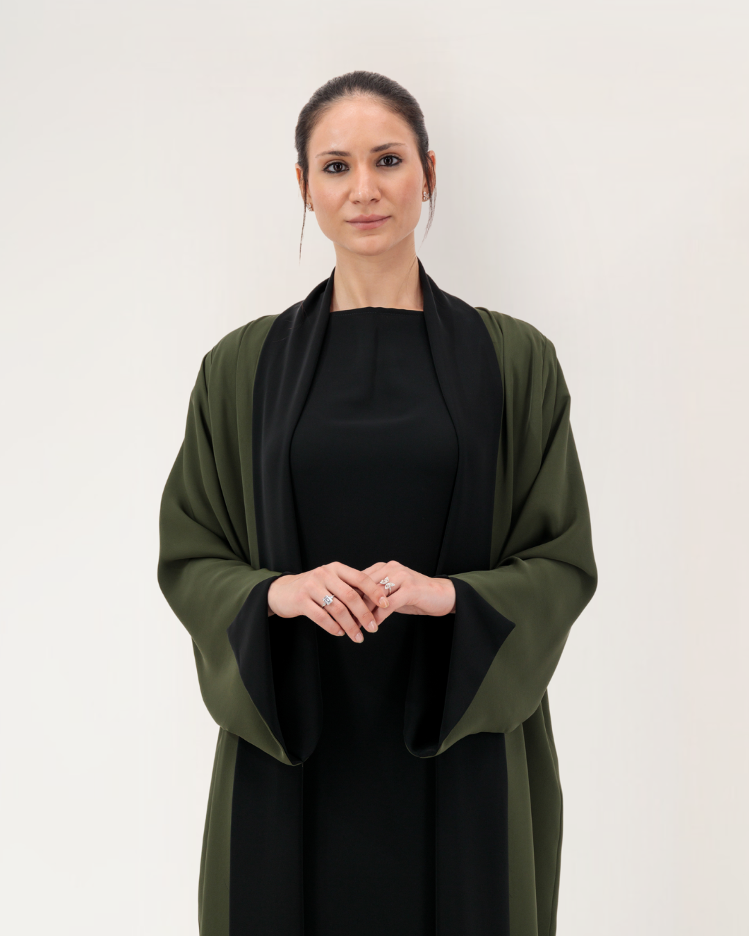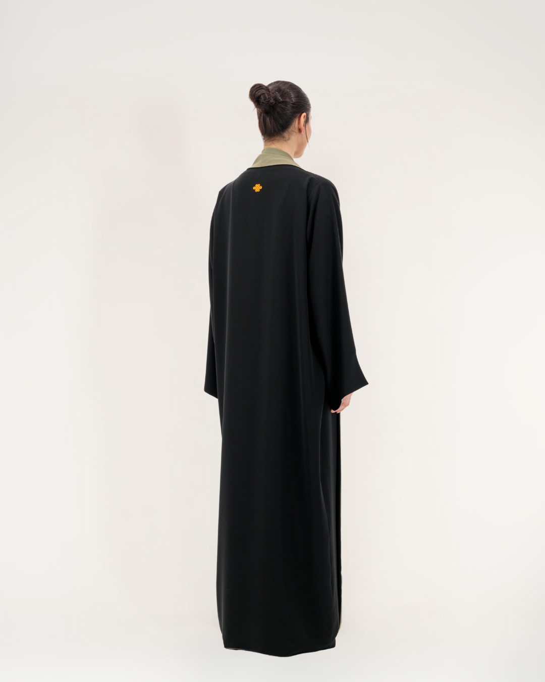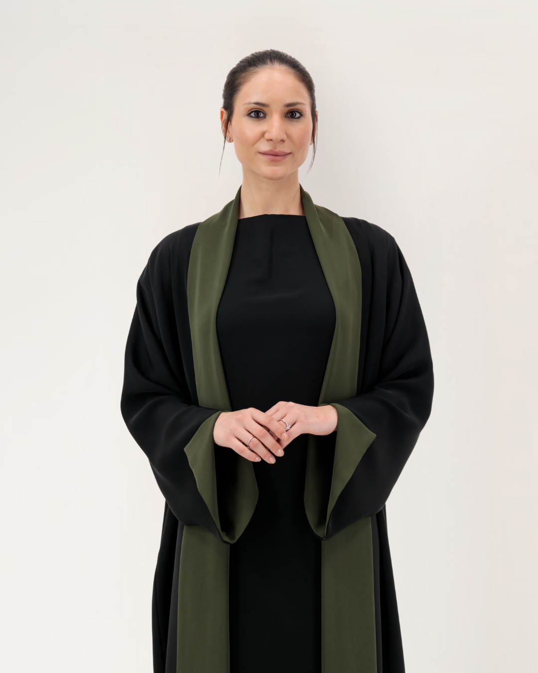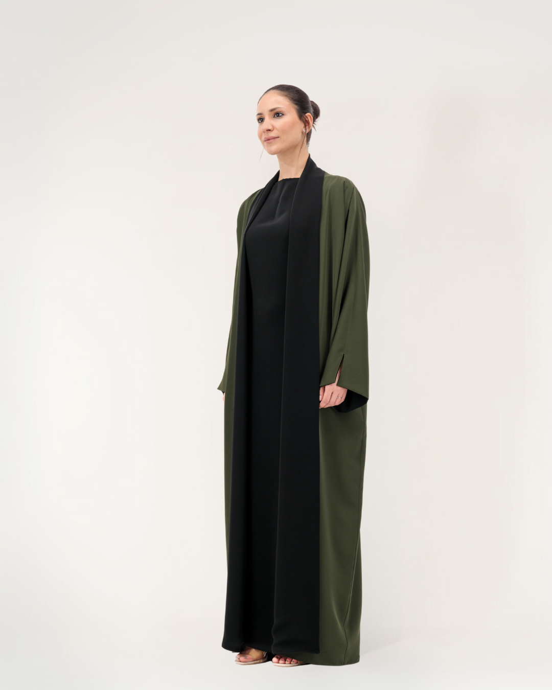 Embrace timeless elegance with our luxurious Reversible Green & Black Abaya, crafted from the finest Korean Nida fabric for a soft, graceful drape. This stunning piece is designed to bring versatility and sophistication to your wardrobe, transitioning effortlessly between two captivating looks.