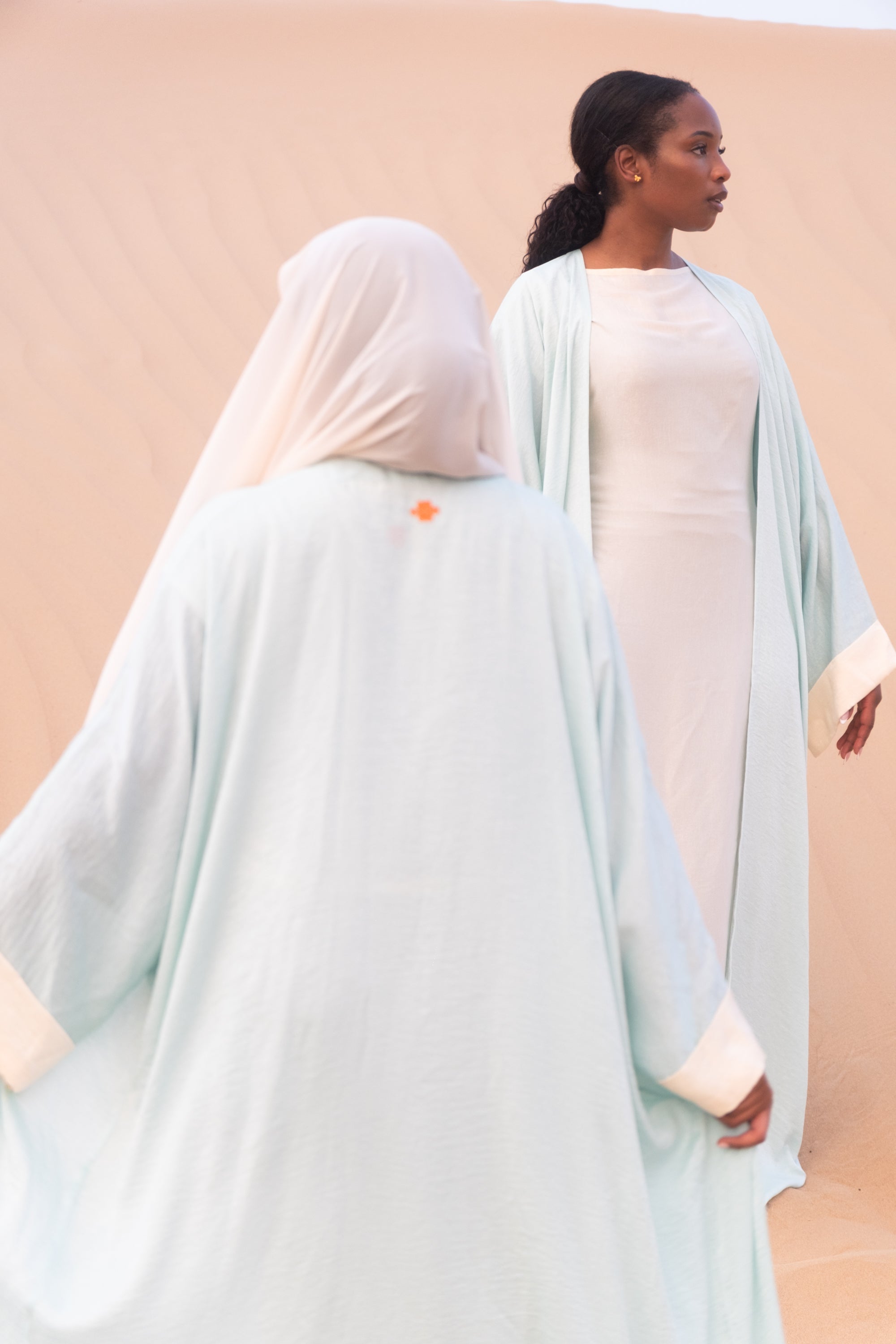 The Velura Contrast Abaya in Mint Green
